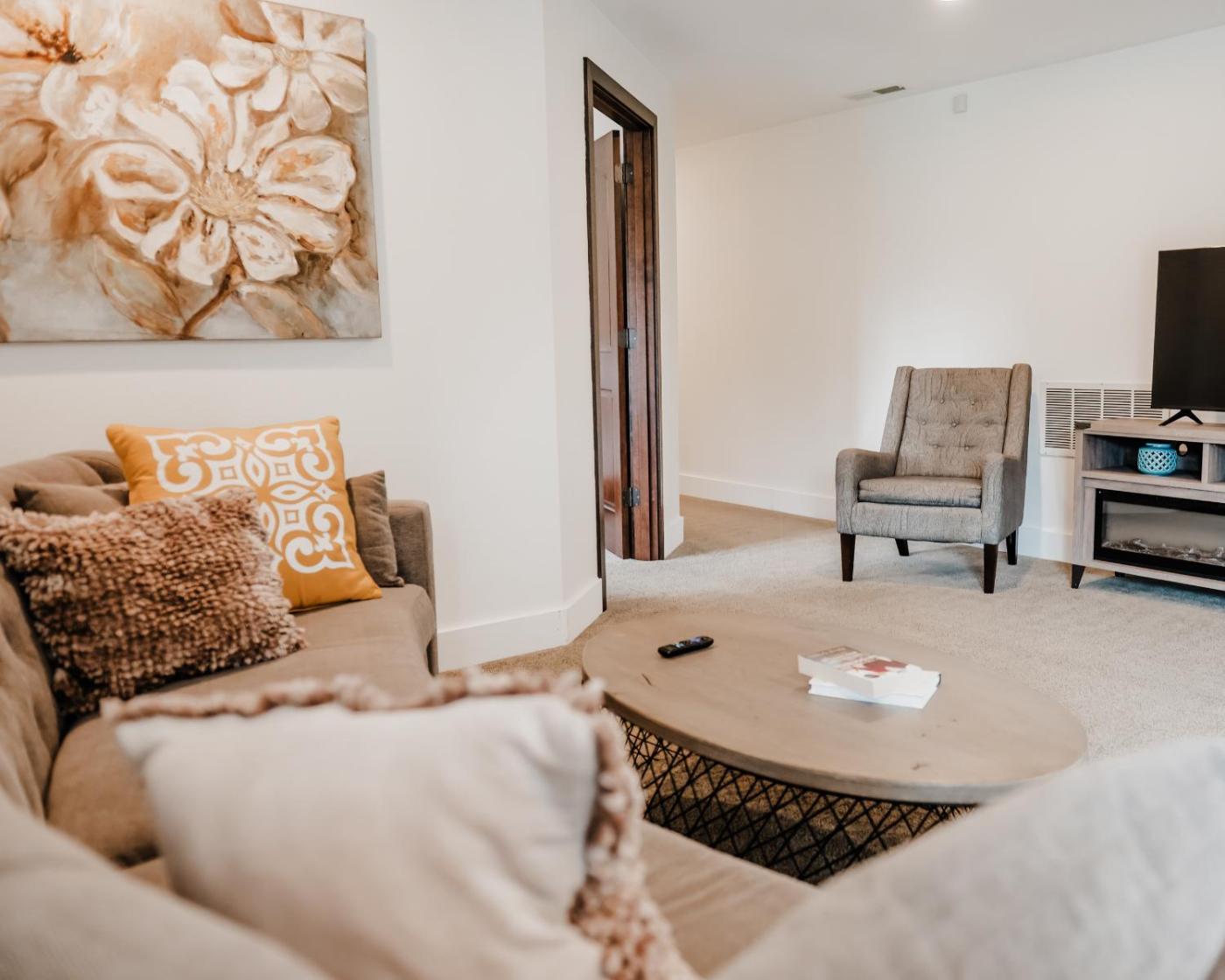 Three-Bedroom Apartment. Guests will have a special experience as this apartment offers a pool with a view, a hot tub and a fireplace. Featuring a private entrance, this air-conditioned apartment comprises 1 living room, 3 separate bedrooms and 1 bathroom with a bath and a shower. Guests will find a stovetop, a refrigerator, a dishwasher and kitchenware in the well-equipped kitchen. The apartment also provides guests with a barbecue. The spacious apartment provides a flat-screen TV with streaming services, a washing machine, soundproof walls, a minibar as well as lake views. The unit offers 4 beds and 1 futon.