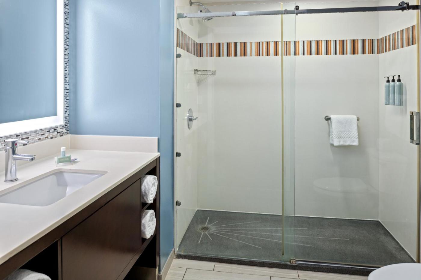 Studio Suite, Guest room, 1 King, Non-Private Sofa bed (Hearing Accessible). Meals can be prepared in the kitchen, which features a stovetop, a refrigerator, a dishwasher and kitchenware. This air-conditioned suite is comprised of a flat-screen TV with streaming services, a private bathroom as well as a balcony. ;