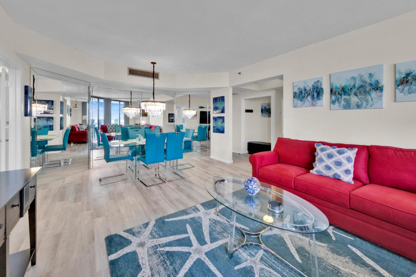 The holiday home also features an outdoor swimming pool and a spa centre for guests to relax in. A water park and kids pool are available for guests at Available for Season! Sunshine In The Sky at Surfside 607.