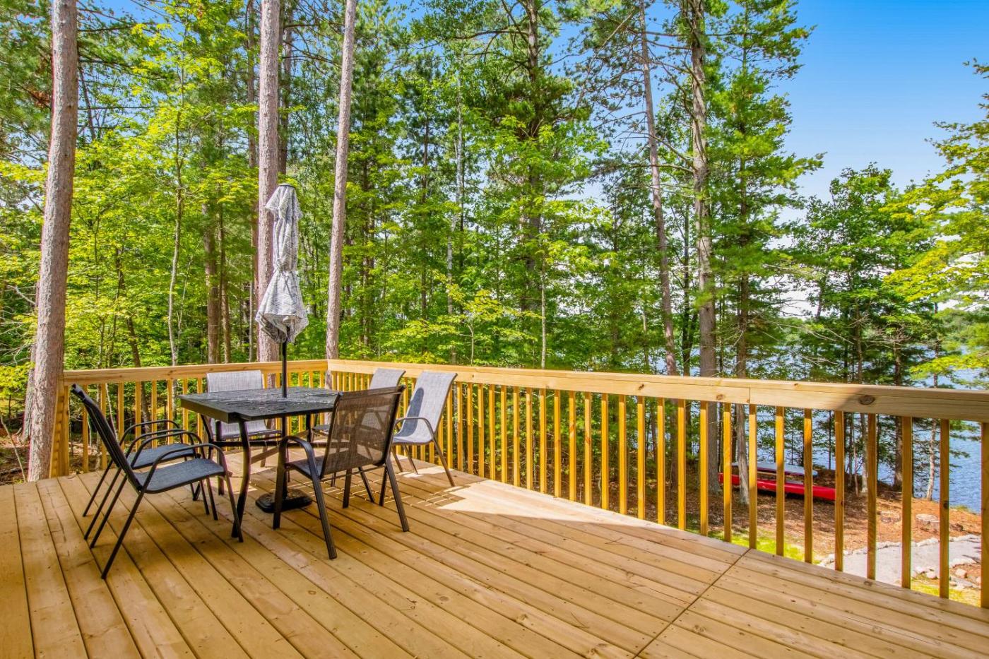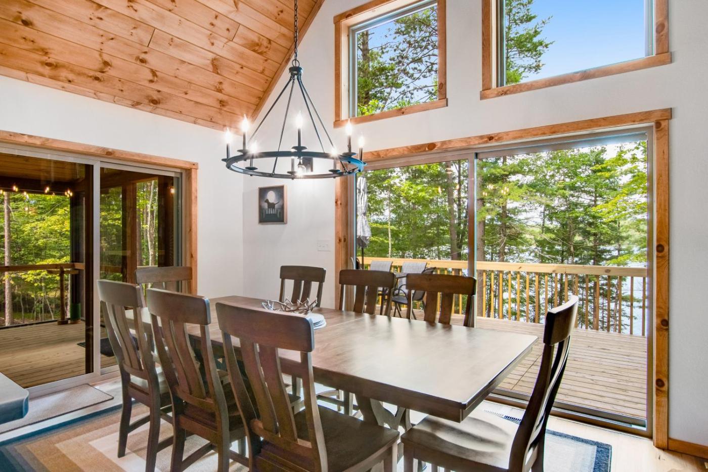 The spacious holiday home is fitted with 5 bedrooms, 3 bathrooms, bed linen, towels, a TV with streaming services, a dining area, a fully equipped kitchen, and a patio with lake views. There is also a seating area and a fireplace.