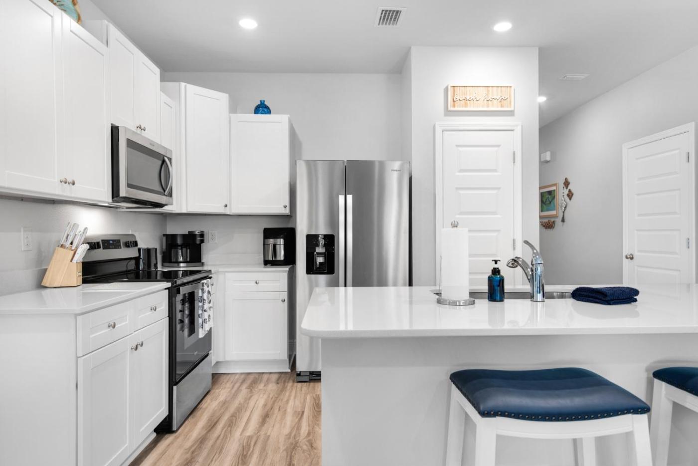 Three-Bedroom Townhouse. Boasting a private entrance, this air-conditioned holiday home includes 1 living room, 3 separate bedrooms and 2 bathrooms with a walk-in shower and a bath. Guests will find a stovetop, a refrigerator, a dishwasher and kitchenware in the fully equipped kitchen. The holiday home also features a barbecue. The spacious holiday home offers a washing machine, a tea and coffee maker, a dining area, a safe deposit box, as well as a flat-screen TV with streaming services. The unit has 4 beds.