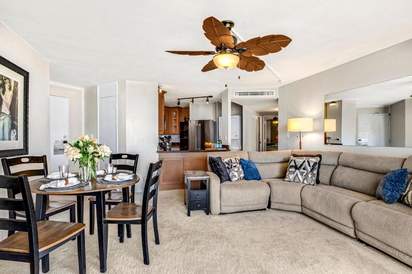 Set in Kaanapali, KBM Resorts FREE CAR Kaanapali Shores Ocean view 2-Bedroom Condo Recently Remodeled Includes Beach Gear KS-815 offers a balcony with sea and mountain views, as well as an outdoor pool, hot tub and beauty services. This beachfront property offers access to a patio and free private parking. The property features a lift, a restaurant with an outdoor dining area.