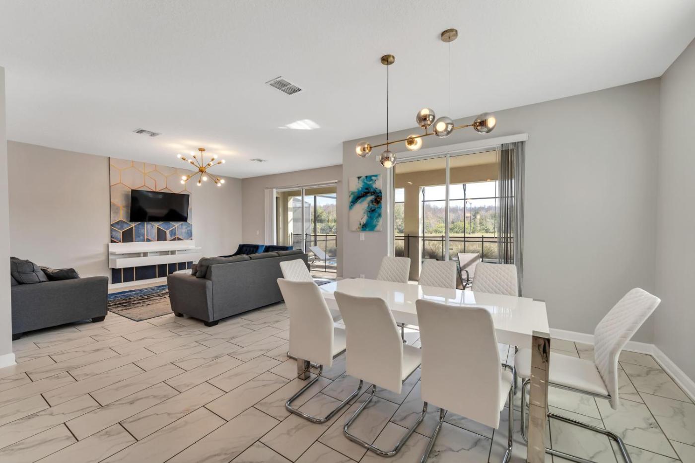 Seven-Bedroom Holiday Home. The private pool is the special feature of this holiday home. Featuring 7 bedrooms and 5 bathrooms, this spacious holiday home offers a well-fitted kitchen and a dining area. In the kitchen, guests will find a stovetop, a dishwasher, kitchenware and an oven. The air-conditioned holiday home provides a TV, a washing machine, a tea and coffee maker, heating as well as lake views. The unit has 10 beds.