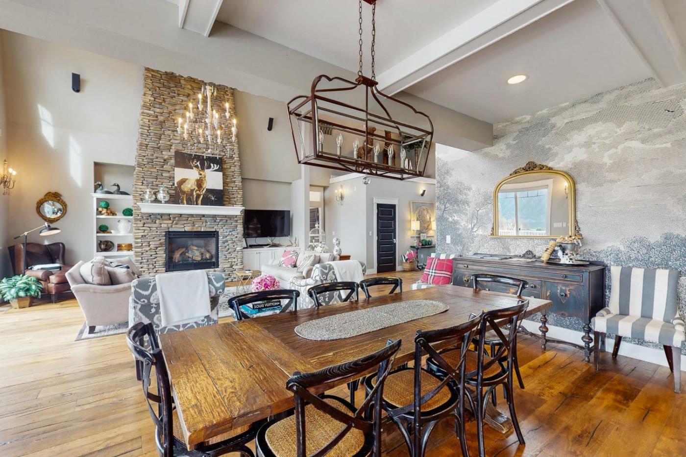 The spacious holiday home features 6 bedrooms, a TV with streaming services, a fully equipped kitchen with a dishwasher and an oven, a washing machine, and 5 bathrooms with a hot tub. Guests can take in the views of the lake from the balcony, which also has outdoor furniture. There is also a seating area and a fireplace.