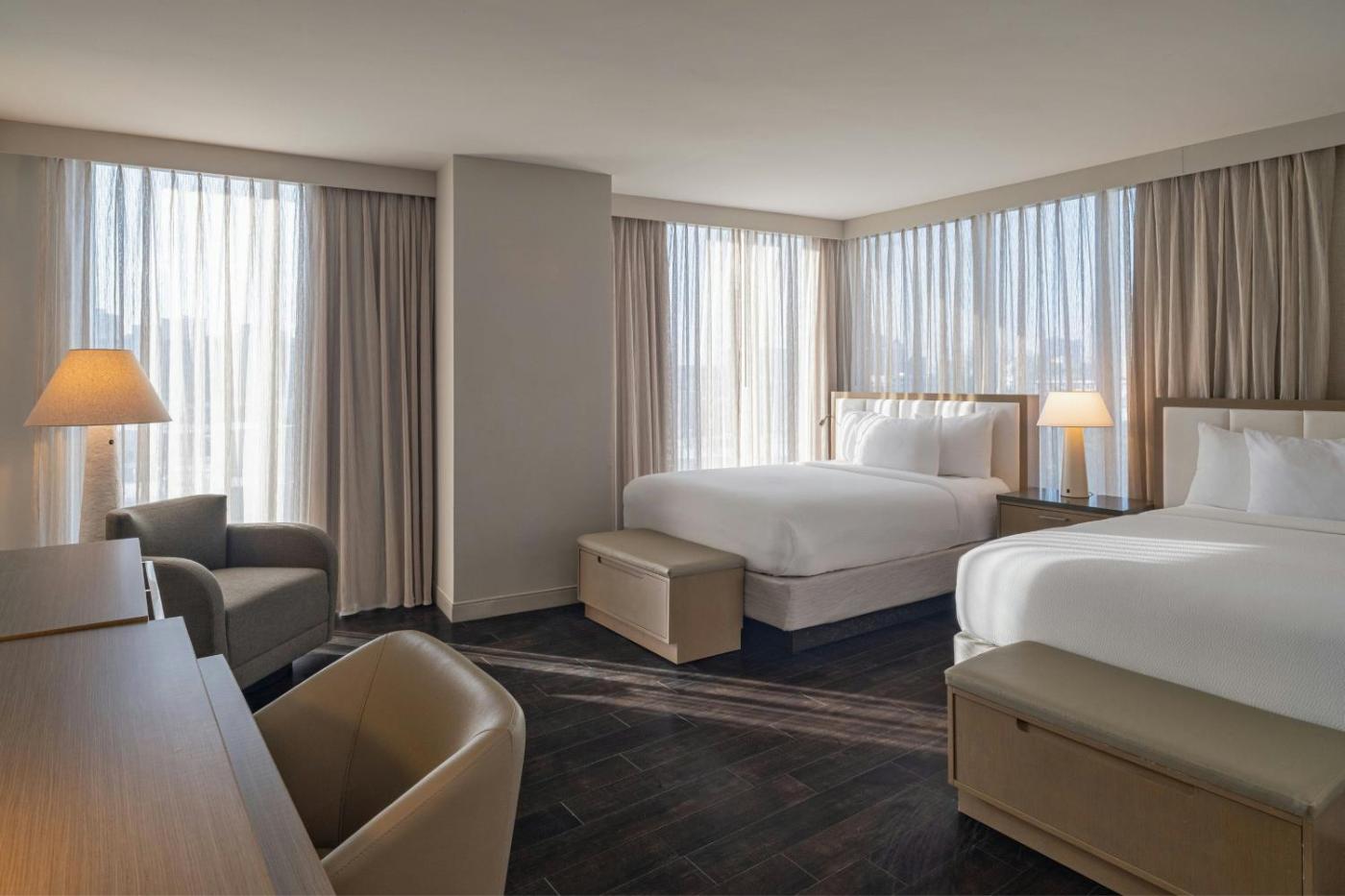 Studio with Two Queen Beds and Balcony - Hearing Accessible. The unit has 2 beds. ;