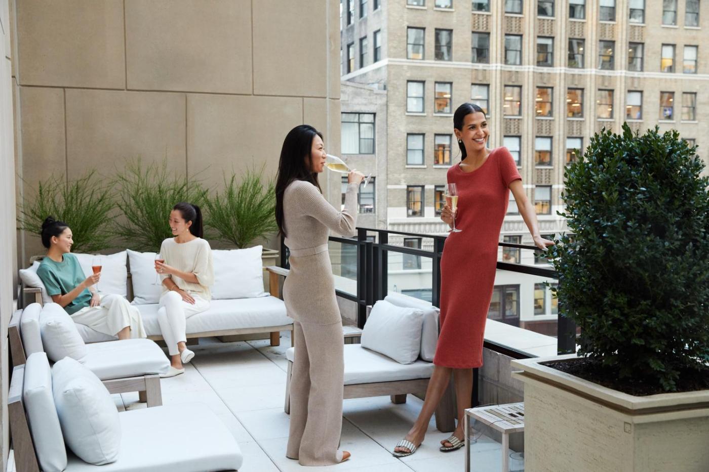 Gotham Suite with Terrace. Located between 23 and 24th floors, this suite offers a view downtown Manhattan. The suite comes with a living area with a sofa, a desk and a private bathroom. It features 40 square feet of open terrace space as well. ;