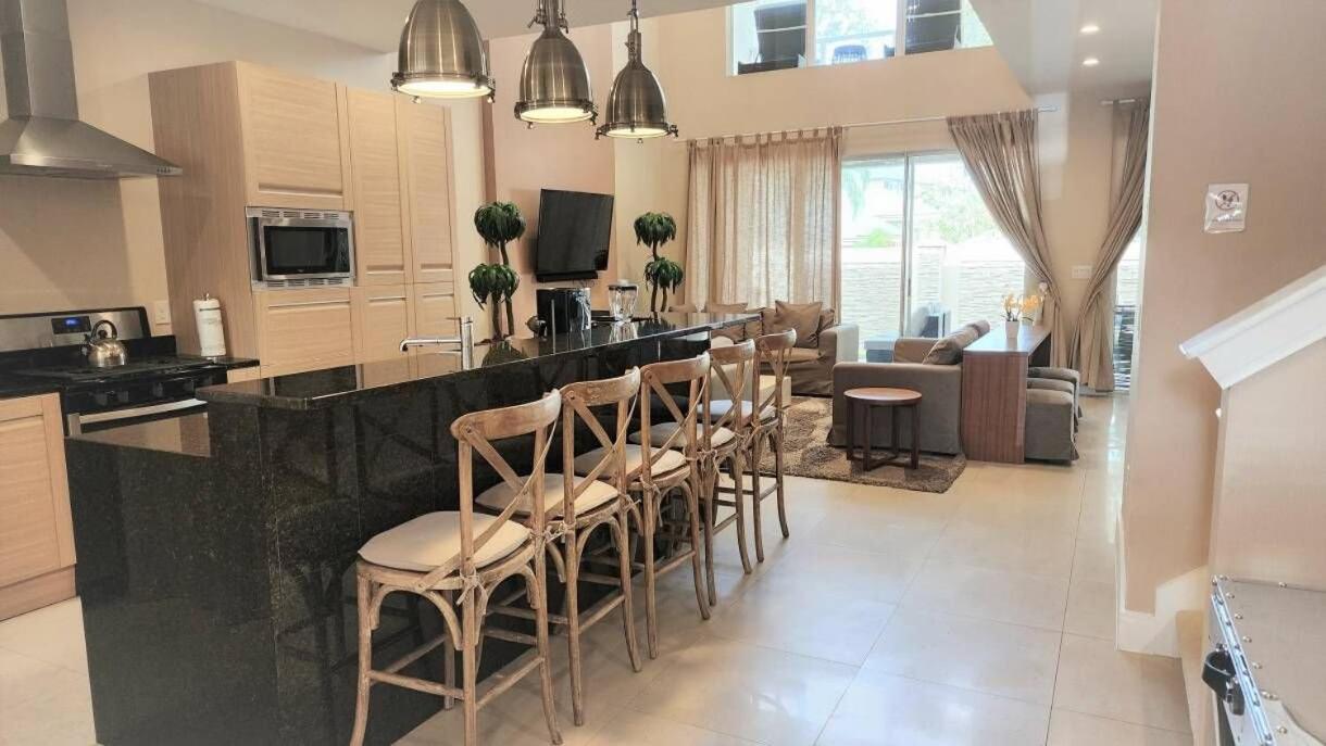 Three-Bedroom Villa. Featuring a private entrance, this spacious villa also comprises 3 bedrooms, a seating area and 4 bathrooms with a bath and a shower. Guests will find a stovetop, a refrigerator, a dishwasher and kitchenware in the well-fitted kitchen. The villa also provides guests with a barbecue. The air-conditioned villa provides a flat-screen TV with cable channels, a washing machine, a coffee machine, a dining area as well as garden views. The unit offers 4 beds.