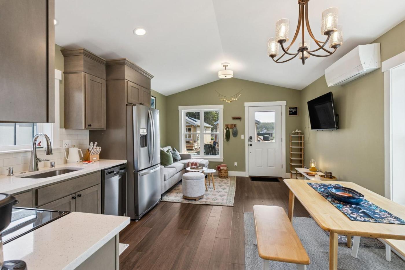 One-Bedroom House. Featuring a private entrance, this air-conditioned holiday home comprises 1 living room, 1 separate bedroom and 1 bathroom with a hairdryer. Guests will find a stovetop, a refrigerator, a dishwasher and kitchenware in the well-fitted kitchen. The holiday home also provides guests with a barbecue. The holiday home provides a washing machine, a tea and coffee maker, tumble dryer, as well as outdoor furniture. The unit offers 2 beds.