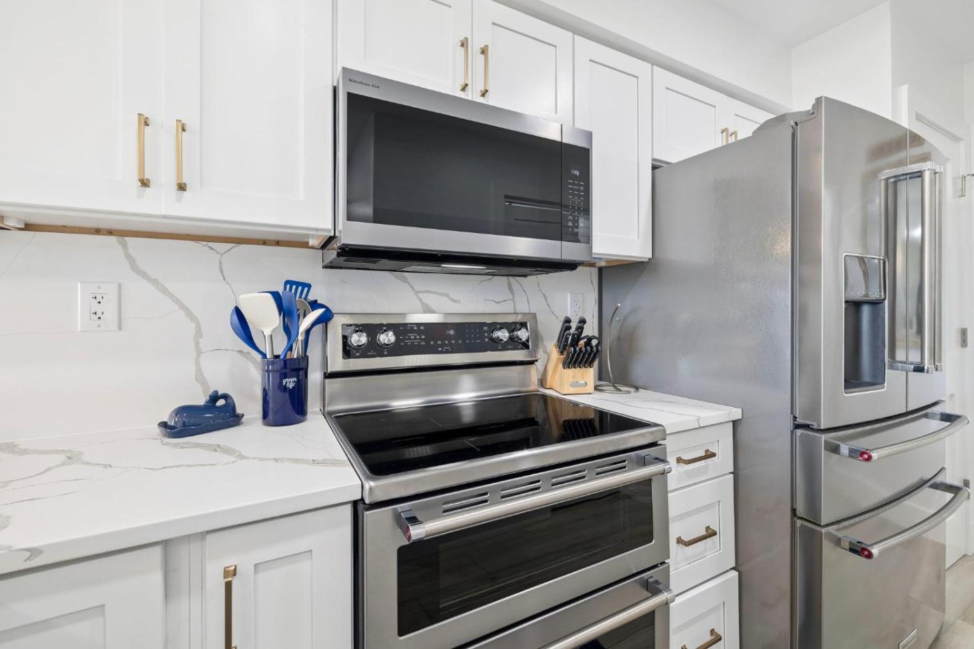 Three-Bedroom Apartment. This spacious apartment comprises 1 living room, 3 separate bedrooms and 3 bathrooms with a hairdryer and free toiletries. The fully equipped kitchen features a stovetop, a refrigerator, a dishwasher and kitchenware. The air-conditioned apartment provides a TV with cable channels, a washing machine, a private entrance, a tea and coffee maker as well as sea views. The unit offers 4 beds.