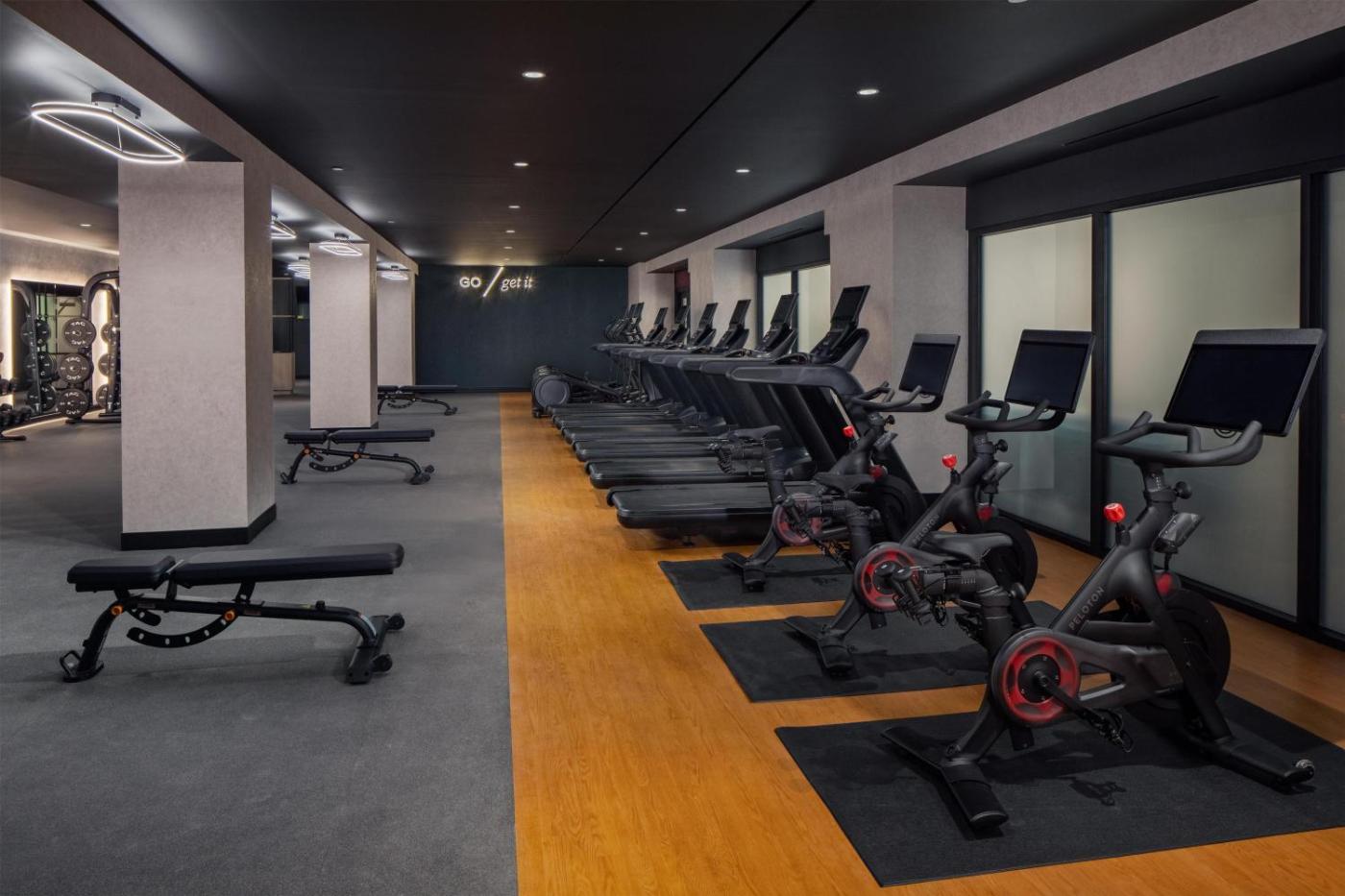 King Room with Peloton Bike. Providing free toiletries, this double room includes a private bathroom with a bath or a shower and a hairdryer. The spacious double room provides air conditioning, a tea and coffee maker, a wardrobe, a safe deposit box and a flat-screen TV with cable channels. The unit offers 1 bed. ;